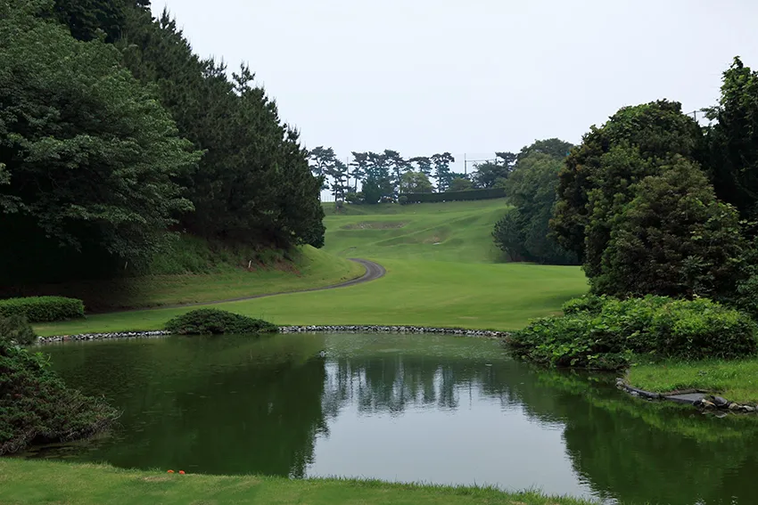 2. コース内の池はすべてペナルティーエリア(ラテラルウォーターハザード)とし、赤杭または赤線をもってその限界を標示する。