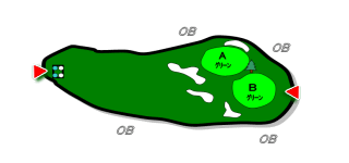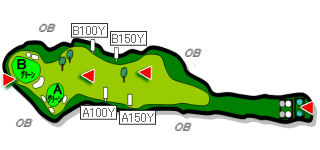 • 距離の無いショートホール。左サイドはOBとなるのでAグリーンとBグリーンの間が狙い目。1オンすればサービスホールとなるが、左バンカーは難物。大たたきの可能性もある。